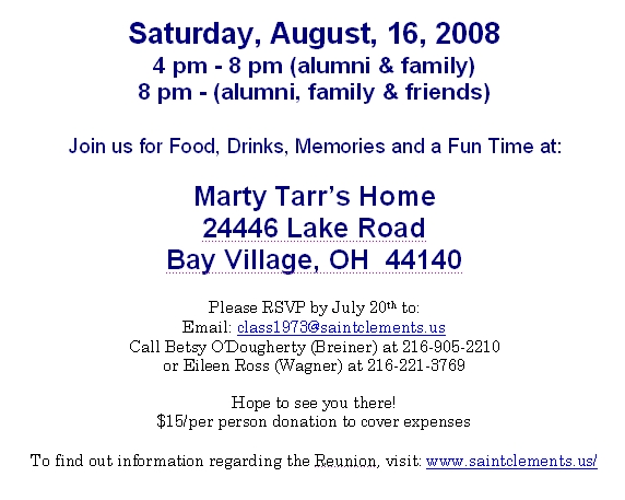 Class of 1973 Planning 8th Grade Reunion - August 16, 2008